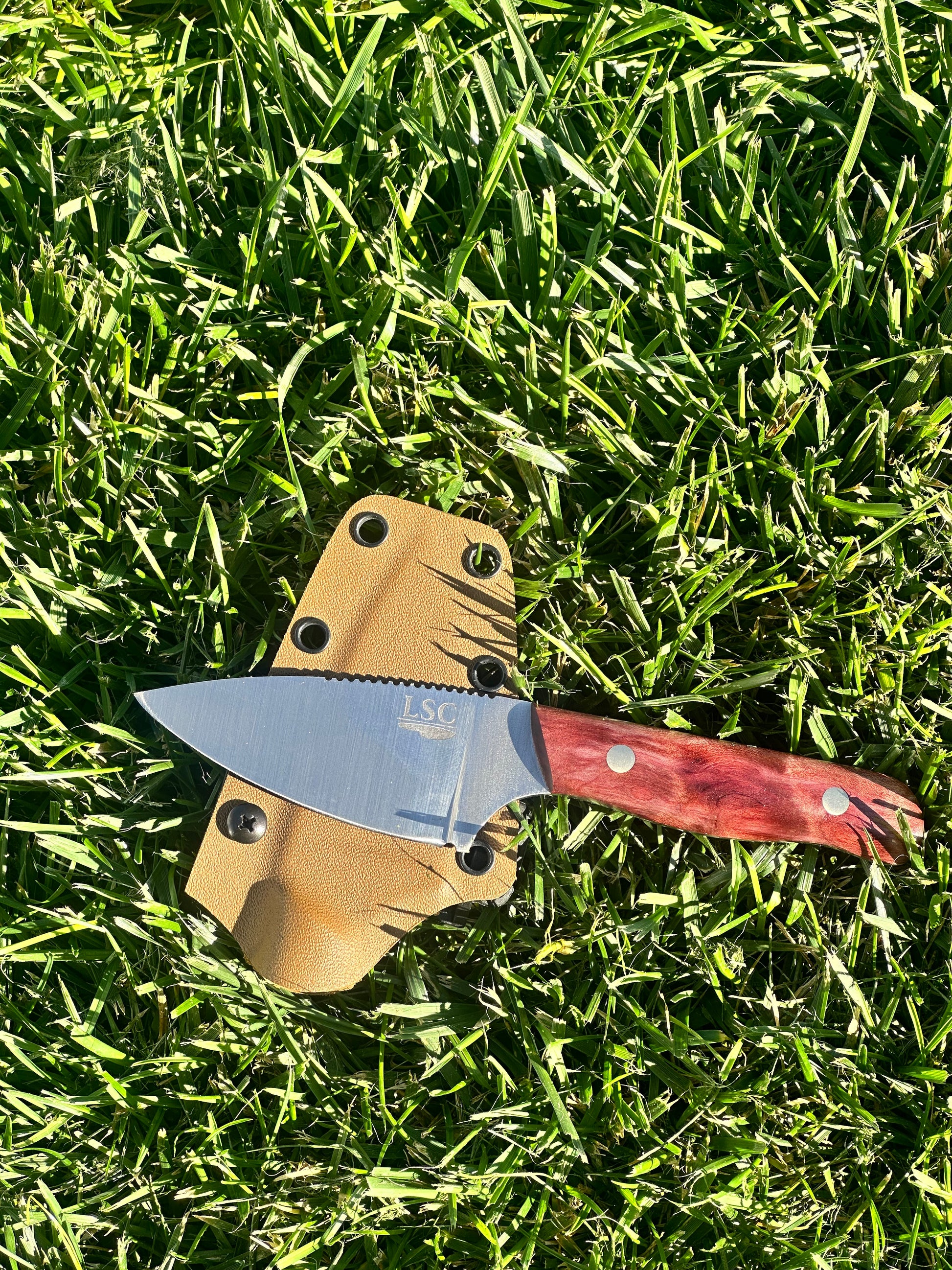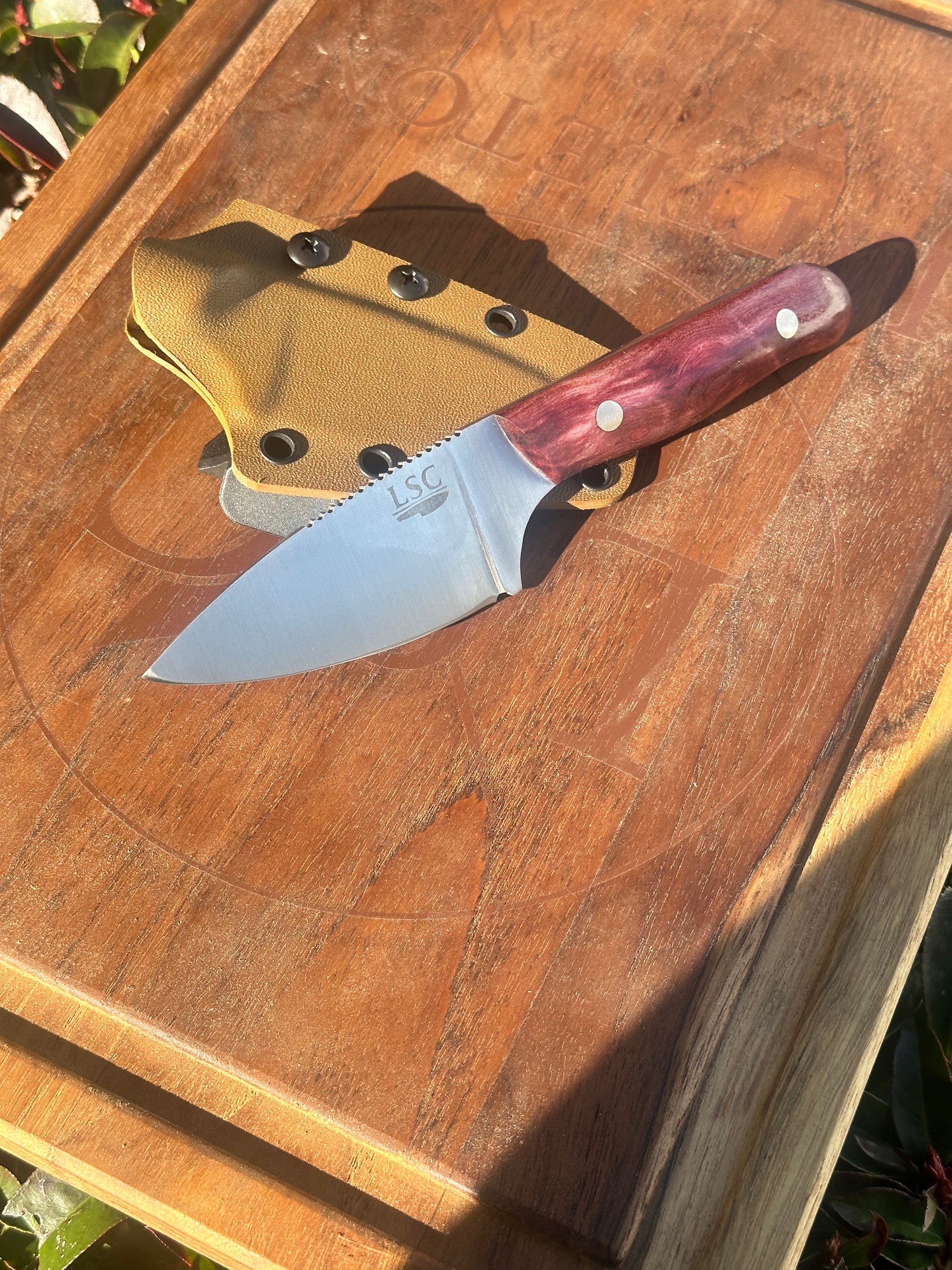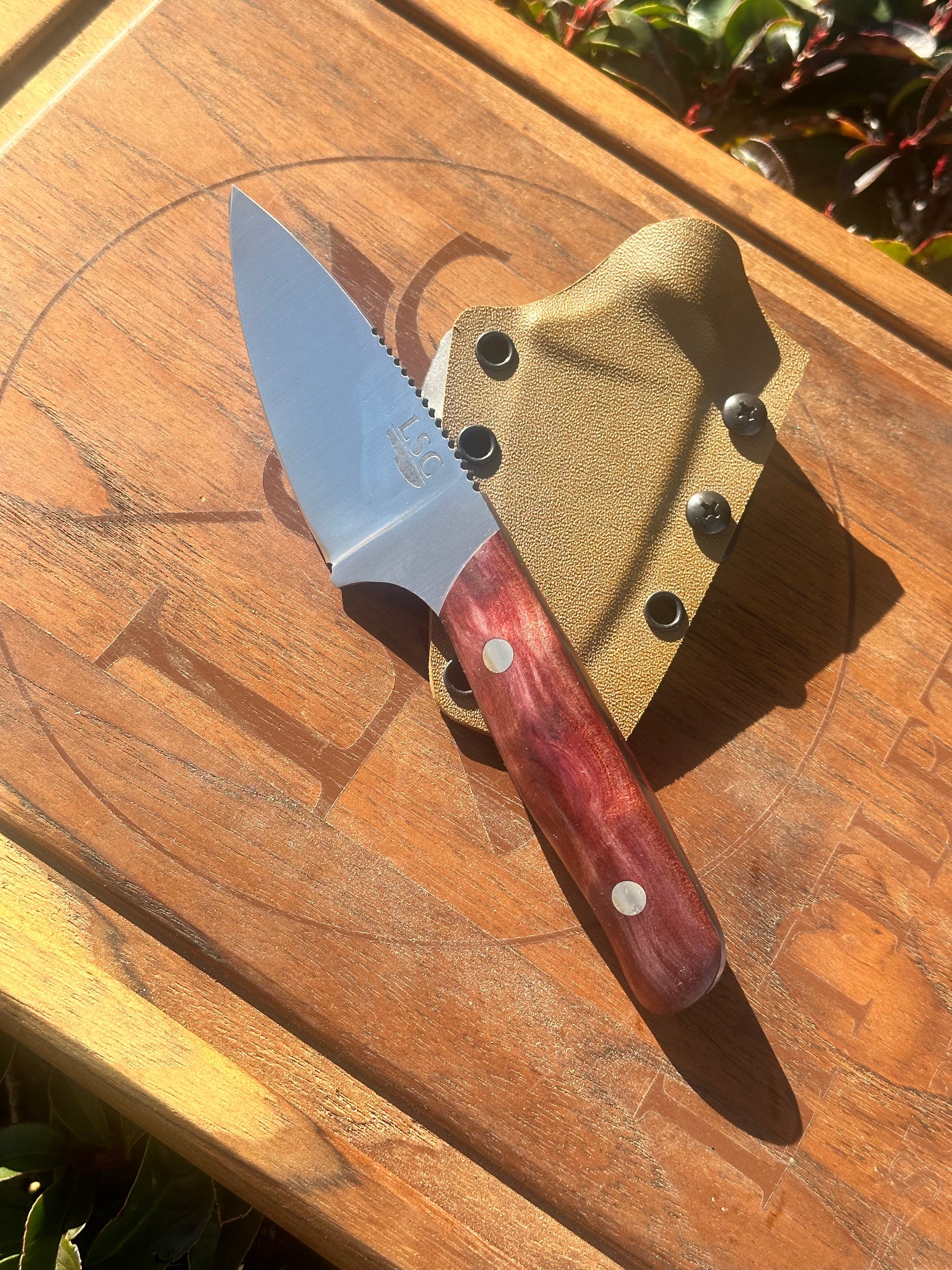 [SOLD] Custom 3" Skinner Knife with Red Maple Scales