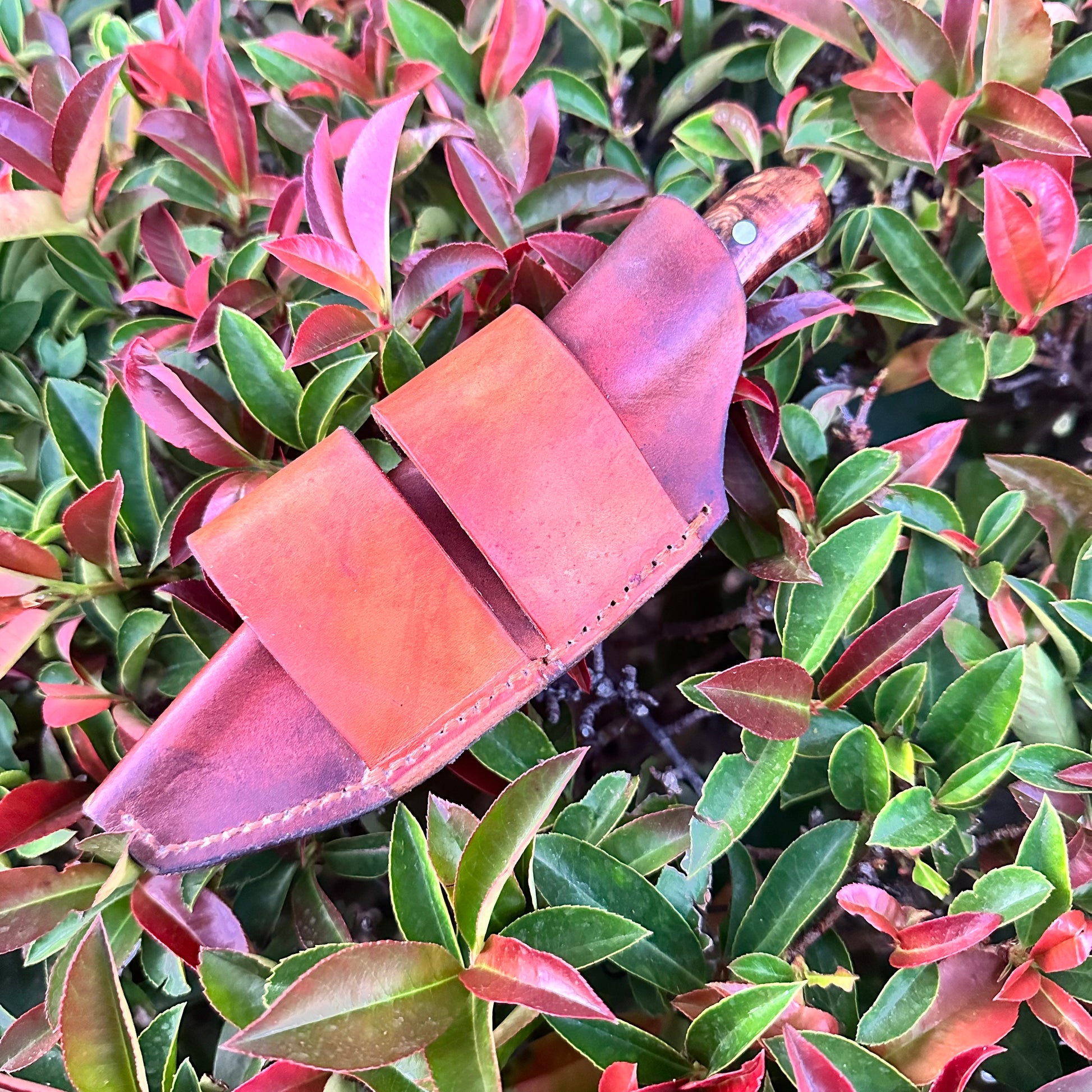 Sheath: Dyed Vegetable Tanned Leather Horizontal Carry with Dual belt Loops