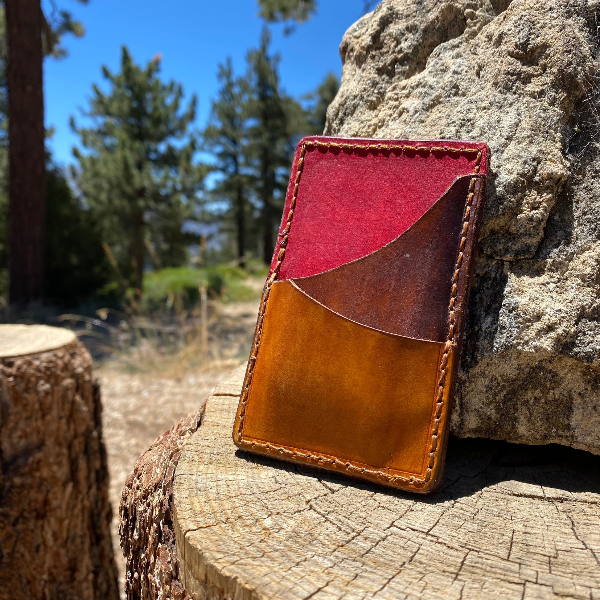 Each wallet is handmade, hand stained, and hand stitched from full grain vegetable tanned leather. The leather in this wallet will patina beautifully as it ages and show it's character as you use it, giving you a truly unique one of a kind piece.